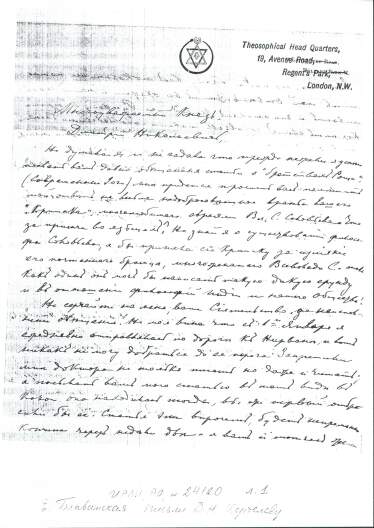 Meine Recherchen führten mich im Frühjahr 1996 nach St. Petersburg. Dort fand ich im Puschkinhaus, welches Archive verschiedener russischer Schriftsteller beherbergt, einen bisher unbekannten Brief H. P. Blavatskys an den Fürsten D. N. Zertelew. Jeder Nutzer des Archivs muss sich dort in eine bestimmte Kartei eintragen, damit dokumentiert ist, welche Personen welche Archivalien benutzt haben. Zu diesem Brief war vor mir noch kein Eintrag vorhanden.